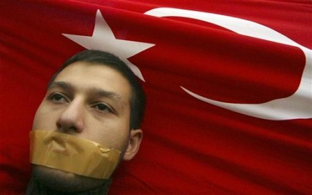 10月21日,在土耳其伊斯坦布尔的示威活动。他们抗议库尔德人武装杀害17名土耳其士兵并致伤16人。Stringer摄
