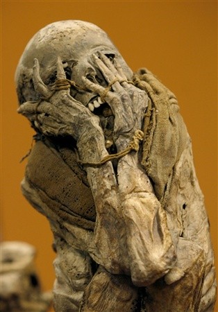 1月9日,在秘鲁首都利马的一个展览管理,来自chachapoyas文化的木乃伊在进行展出。Mariana Bazo摄。