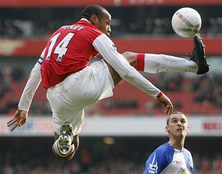 2月17日,足总杯第五轮比赛,阿森纳对布莱克本,法国人亨利奋力争抢控球。Eddie Keogh摄。