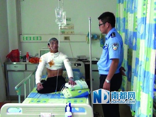 阿龙在熟睡时被室友用开水浇伤,醒后又被酒瓶砸破头。 警方供图