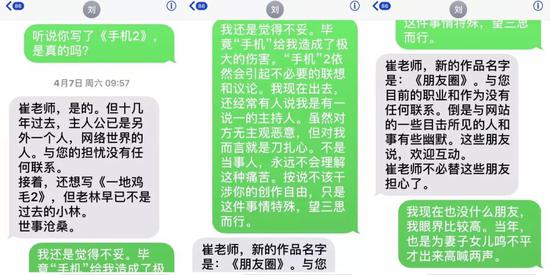 这部剧也让崔永元感觉受到了“伤害”,被人议论。  ▲崔永元在微博中晒出与刘震云沟通的短信