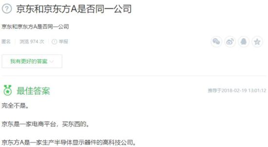 据券商中国此前报道,一位绰号叫“茶叶老韦”的资深股民是刘强东的“死忠粉”,每次看见京东的货运车他都要行注目礼的。 在去年,这位股民买入了京东方A的股票,并分析称: 京东方是一家特别厉害的公司,你看,连马云都视刘强东为竞争对手,而且,那么年轻漂亮的奶茶妹妹都嫁给他了。 所以,我老早就觉得,今后它肯定会有不错的表现。 2017年年初不到3块钱的时候,我毅然决定买入京东方A,然后一直忍住不卖。 到2017年9月的时候,我想到双11就要来了,像京东方这样的电商巨头都要火一把的。 于是,我就用融资融券加了杠杆。没想到2017年10月又来了一波大涨,还创出了历史新高。 看来炒股想赚大钱,还得看基本面啊! “茶叶老韦”的选股逻辑让人哭笑不得,事实上,京东方A去年股价大涨是因为“柔性OLED屏打破三星的垄断”这个基本面的重大改变。  ▲在百度知道上,有网友也提出了类似的问题