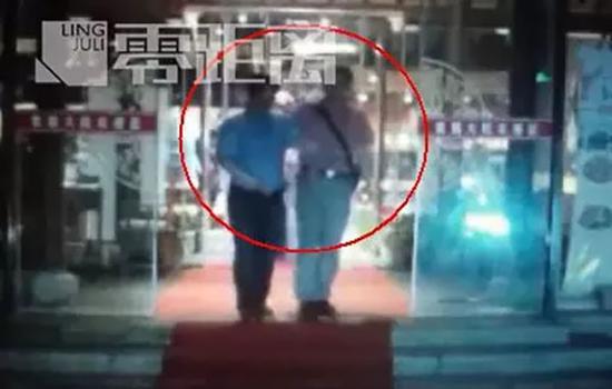 视频显示,饭局结束时,陈绪军主任与身穿粉色上衣的男子一同走出酒店,握手拥抱。