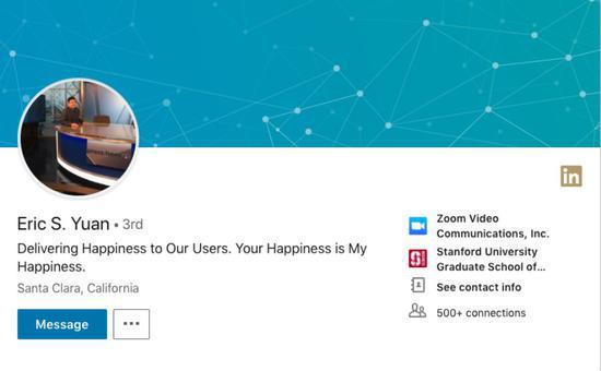 袁征在接受GlassDoor采访时表示。“我知道我必须努力工作,所以我就按我想的做了。同时,我也很偏执,我对自己说,我必须更努力地工作。那就是我唯一比我的竞争对手更了解的事情。” Zoom创办灵感来自大一女友 但说起袁征的公司Zoom,还要追溯到他在中国读大一的时候。当时,刚迈入大学校门的袁征与他的女友之间进行着痛苦的异地恋,这种想见却不能见的伤痛促使他有了一个开发可以视频通话设备的想法。 “当时我和女友住得很远,我们一年只能见两次面。”袁征说道。“我当时在想,‘如果有一个设备,让我一打开就能看到她,就能和她通话,就像我们在同一个房间里一样。’虽然当时我这个想法有点像白日做梦。但后来,当我构建这个解决方案时,我却能够把这些点子结合到一块儿。哇,这太不可思议了。如今,当时的女友成了我现在的老婆。” 后来,袁征在2006年获得斯坦福大学MBA,并于2011年创立Zoom并成为公司CEO。据袁征本人的领英页面显示,在创办Zoom之前的1997年~2011年,他曾在思科系统(Cisco System)担任WebEx部门的工程副总裁。在WebEx工作期间,袁征将该部门的工程师从区区10名发展到了超过800名,并将收入增长从0发展到超过8亿美元。 如今,Zoom每年为超过200亿分钟的视频会议提供服务,其客户包括美国财富500强公司的1/3和美国前200所大学的90%。Zoom也在去年获得了美国科技公司独角兽的地位(估值超过10亿美元)。  ▲袁征的领英页面