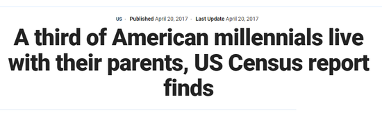 ▲美媒报道指出,在18-34岁的美国年轻人中,有1/3和父母住在一起,需要父母经济资助(via Fox News)