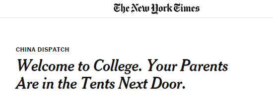 ▲“欢迎来上大学,你的家长就住在隔壁的帐篷里” (via New York Times)