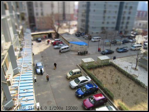 至于微缩景观就比较适合大人玩了,这张照片就是我家小区的情况,不过这样照出来就想一个小模型一样,确实很逗。人眼对于相片的景深适应了,这种“戏法”就妙趣横生了,估计拿给清朝人看,他们就不会觉得别扭了,哈哈。