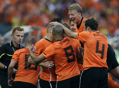 进入世界杯正赛后,荷兰队更加飙悍。世界杯分组抽签刚刚揭晓时,许多人惊叹,荷兰是在一支“死亡之组”,毕竟丹麦、喀麦隆、日本都有不俗的战力。但荷兰队2-0击溃丹麦,1-0力克日本,末战半力出击依然击败喀麦隆,三战全胜出线。甚至于,荷兰队还没有施出全力,斯内德等人刻意留力,罗本为求保险一直在养伤……直到此时,世界主流媒体才开始惊呼:人们是不是低估了荷兰队?要知道,罗本、斯内德在过去这个赛季的表现,可是丝毫不逊色于梅西[博客]C罗!