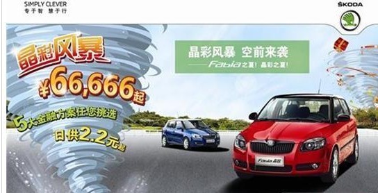 “晶彩风暴 空前来袭”,上海大众斯柯达,即日起到8月31日,时尚小车斯柯达晶锐将推出多重优惠活动,购车最低66666元起,此外包括“半付半贷0利率日供2.2元起,2年0利率”等5大金融方案任您挑选,欢迎广大车友到店详询。