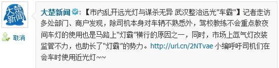 市内乱开远光灯与谋杀无异 武汉整治远光"车霸"