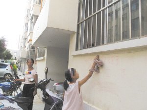 锦玺将养父写在家门口外墙上卖她的字擦掉
