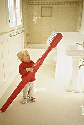 很多口腔疾病的发生都与口腔卫生不好有关,所以从新生儿期起就应该开始培养口腔卫生习惯。可在吃奶后喝几口白开水,冲洗一下口腔。自牙齿刚刚萌出时,父母可用纱布给孩子擦洗乳牙。到孩子1岁左右,应有意识地教他漱口,含一口水后让小儿鼓腮,这样可促使水在口腔中流动,慢慢地小儿就可以学会漱口了。 2岁左右,就可以教孩子自己刷牙了。开始刷牙时,可以先不使用牙膏,等孩子学会后再用牙膏。大多数3岁的孩子都能够掌握好刷牙的方法。 怎样选择牙膏和牙刷? 市售的牙刷种类很多,有成人型、儿童型、幼儿型,有普通型、电动型。到底如何选择?小孩要使用小儿专用的刷头柔软的牙刷。在使用牙刷时应注意每次用完要将牙刷清洗干净,甩干后将刷头向上放在口杯里,以保持刷头干燥,减少细菌孳生。应定期更换牙刷。有人主张每1~3个月更换1次牙刷。如果刷毛卷曲,应马上更换,以防擦伤牙龈。当孩子学会将漱口水吐出时才能使用牙膏。牙膏要选用儿童型牙膏,如为药物牙膏应经常更换牙膏的种类。含氟牙膏可以增强牙齿的抗酸能力,促进牙齿的再矿化,起到预防龋齿的作用。如果所在地区饮用水中含氟低,可根据口腔医生的建议为小儿选购含氟特别是含双氟(活性氟)的儿童牙膏。