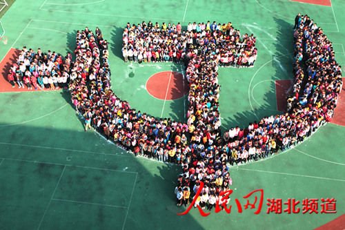 人民网湖北枝江11月7日电 11月6日,枝江市实验小学师生正在演唱《没有共产党就没有新中国》。当日,湖北省枝江市实验小学1200多名师生摆成巨型党徽图案,举行以“喜迎十八大 颂歌献给党”为主题的演唱会,师生满怀深情地演唱《党啊亲爱的妈妈》、《没有共产党就没有新中国》、《歌唱祖国》、《社会主义好》、《红星照我去战斗》等歌曲,喜迎党的十八大召开。