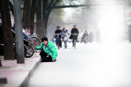 郑州一老人路边搓麻将 外孙女被拴树上(图)