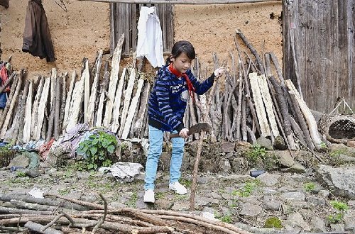 一个星期才能回一次家,但王芹秀一回到家,放下书包就是去忙家务。王芹秀说,早晨要早早起来,煮好饭,白天还要跟着村里的妇女,上山拾柴火,家里有几分地,她还要下田打理。