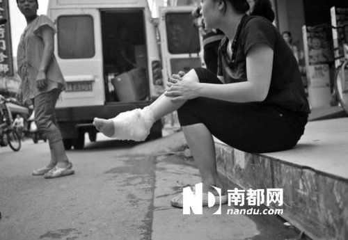 陈女士被车撞后,右脚骨折。