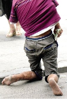 乞丐将胳膊塞进T恤装残疾 趁人不备装钱(图)