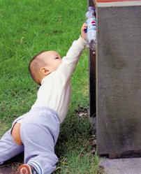 两岁孩子为将饮料瓶扔入垃圾桶摔跤感动众人