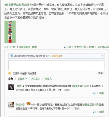 最近一条“盘点最感动你我的坚守”的长微博,短短几个小时,转发量就多达上千次之多,引起众多网友讨论。该条长微博列举了部分坚守模范,除为余姚救灾坚守了5天5夜的民警、世界羽坛坚守多年,屡败屡战的李宗伟之外,也将坚守了185年健康事业,同时不忘广泛开展“济世利人”慈善事业的王老吉,称为企业界的坚守代表。