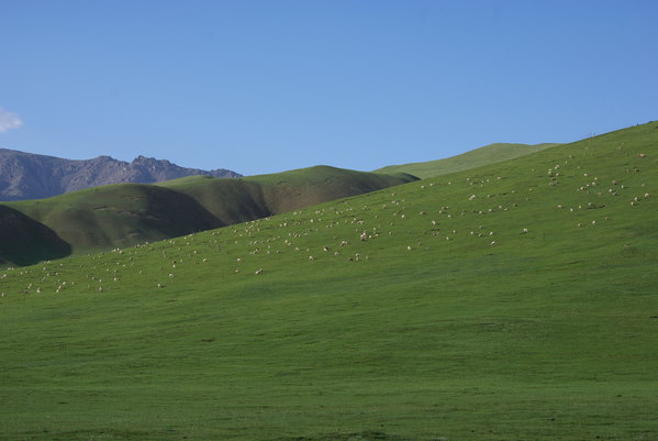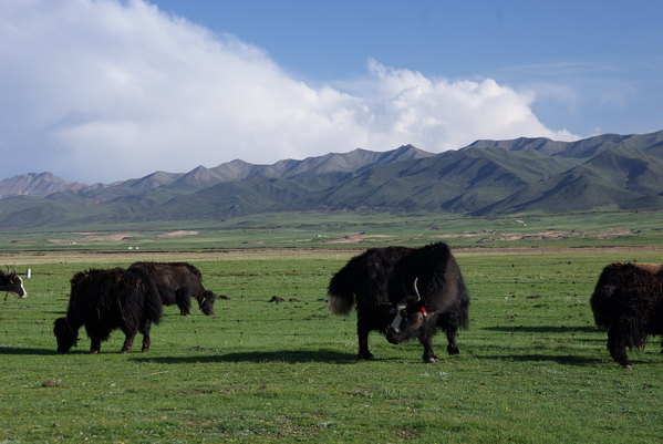 经由扁都口进入青海,路边美景美奂美轮,随时可以让司机停车拍照。不过温度明显比甘肃低,衣着从夏天直接入秋了,好在我们在司机的提醒下,从上海背了不少厚衣服来。
