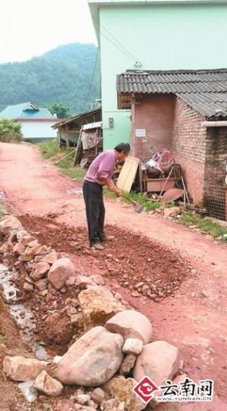 父亲为女儿开车回老家拿锄头补平3公里山路(图)