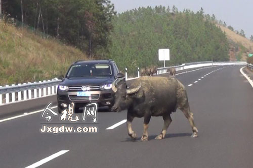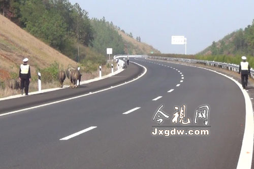 江西:8头耕牛高速路上狂奔 4警察追赶3小时制服(图)
