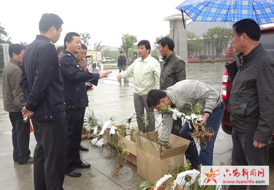 2014年4月12日早晨,支队执法人员到现场发现,约有120户左右兰草商贩,经了解多数是有河南、浙江、湖北等外地兰草培育个体户,受六安兰协邀请参加会展。支队执法人员对展户进行六安市野生植物资源特别是大别山区珍稀植物——兰草的保护的重要性和必要性进行宣传教育,防范有借兰展活动,进行乱采滥挖、贩卖大别山野生兰草行为的发生。