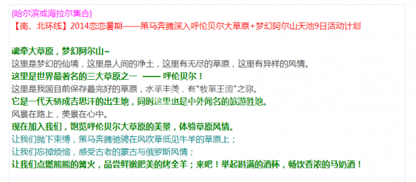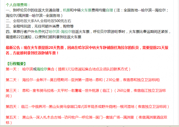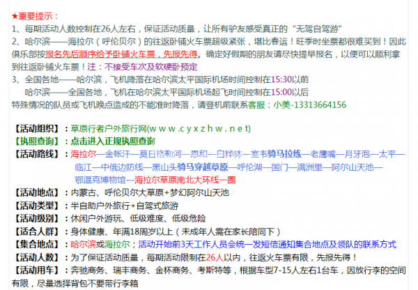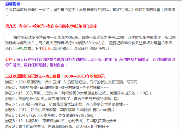 【南、北环线】2014恋恋暑期——策马奔腾深入呼伦贝尔+梦幻阿尔山天池9日活动计划