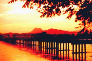 与佛子岭一河之遥的“睡美人”更让你心驰神往,拍手叫绝,如果不亲眼听见,你绝不会想象出上天有如此造化,大自然对人类有这样的恩赐。你看:那“美人”头枕西南山,脚抵东北脉,轻裹大地雾霭,和衣而眠,身下的那片绿色田野是她酣眠的柔床。那飘逸的秀发如青色瀑布顺两鬓婆娑而下,散发出诱人的芳香,那圆润的脸庞,饱含着古代闺中少女的原始之美;那张欲闭未合的樱桃小口,胜过唐代仕女图中的精品;那丰腴高耸的乳峰,充满了豆蔻年华的风韵。百褶长裙顺山势逶迤轻拂,铺撒在绿色柔床。她那楚楚动人的身姿中也蕴含着一段美丽而动人的爱情故事。