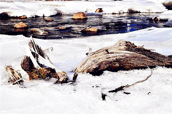 洁净的白雪,千年的树根,还有远处积雪溶化汇成的溪流,冬日林芝冷得也如此温婉。