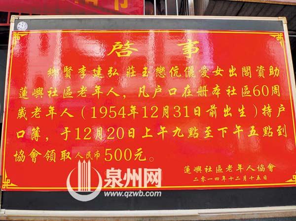 福建富豪低调嫁女 热心公益给693名老人每人500元红包 ...