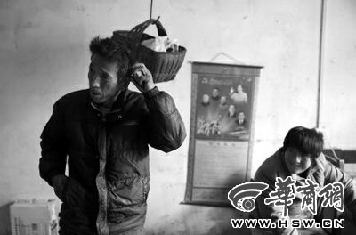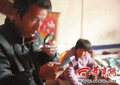 遭遇车祸的姜某(右)生活不能自理,眼睛不好的父亲用放大镜努力查找女婿的电话号码,但一直联系不上他 华商报记者 陈团结 摄
