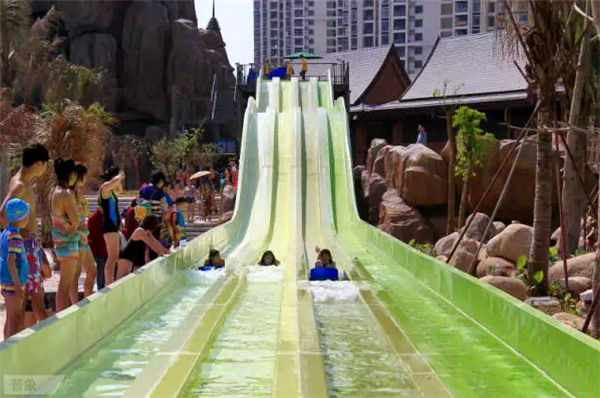 水乐园 3.3万平方米,娱乐项目有岩龛、岩浆、湖滨、火山及涌浪五大泳池;超刺激的环状特色漂流河;儿童水寨;巨兽碗滑道、大水炮、螺旋组合滑道、眼镜蛇滑道、四彩竞速滑道;人造沙滩、水幕电影,同时设有湖畔酒吧、岩龛吧等休闲餐吧。