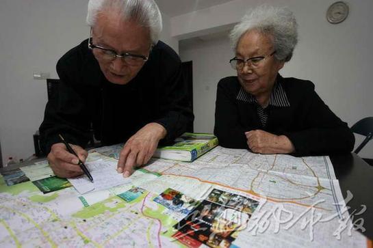 每次出门前张家振和老伴杜培坤总会提前将旅游路线计划好