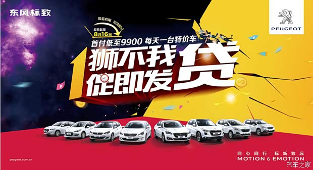 再也不要这样的生活,再也不要委屈自己!2015年这个夏天,要对自己一直好下去! 火辣辣的8月天,东风标致为您提供最火爆的发烧价,即日起至8月16日,东风标致每天提供一款特价车,还有多重信贷置换政策邀您共享!狮不我贷,一促即发,激情无需等待,人生须及时行乐,为自己的尚好人生选取一辆满意座驾,何乐而不为!最重要的是,东风标致实在是太任性了!限时购车倒计时正式开启,车辆有限,赶紧来抢!