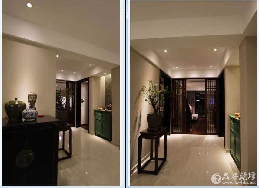 你看我们上图的灯光选择的就很合理,利用了深杯筒灯处理了防眩,顶部如果安装一个强光,那么通过镜面,就形成了亮度对比,这样就有眩光的感觉。一般我们的视觉向上30度角范围内,属于视野范围.我们应该避免这个范围内出现强光。所以灯光强度的设计也很重要。长期眩光对我们的视力和健康都是有害的。
