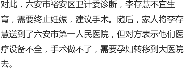 李存慧的公公李开成说“我们到这家医院,医生又建议我们到那家医院。我们到那家医院,他又让我们到另一家医院,我们现在也不知道到哪家医院,到底哪家医院可以收留我们。”