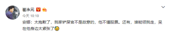 此前对媒体称自己有“一抽屉合同”的崔永元今日上午发表微博称,“不是故意的”、“不懂股票”。