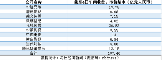 在香港上市的华谊腾讯娱乐,股价更是一度暴跌超20%。 截至午间收盘,包括唐德影视、欢瑞世纪在内的10家影视股龙头公司,市值计缩水高达107亿元!