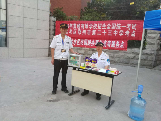据林峙介绍,今天是高考的第一天,为了更好的服务考生,帮助考点维秩序,他们花园路巡防队特意二十三中考点设立的爱心助考点,并为考生们准备了急救药品、饮用水,并成立了应急骑行车队,随时帮助忘带证件的考生回家取证件。