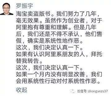 ▲罗振宇朋友圈称淘宝卖盗版书。图片来源于网络