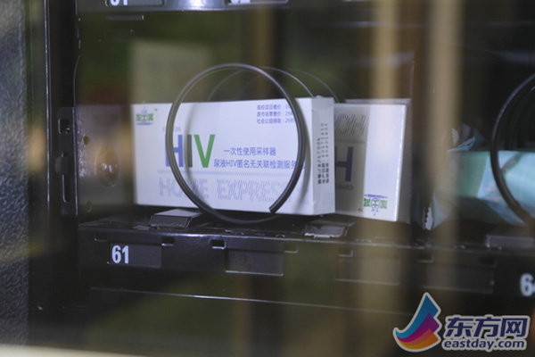 自动售卖机的HIV匿名尿检包特写。 记者近日在上海市性病艾滋病防治协会采访时了解到,截至5月29日,三台自助售卖机运转正常,共计售出59份检测包,回收37份。通过检测,阴性结果32份,阳性结果2份,3份因故检测不合格。 HIV匿名尿检包是啥? 在上海立信会计金融学院3号楼教育超市门口,记者看到,一台自动售卖机最底部摆放着几盒HIV尿液匿名检测包。这意味着,学生只要通过简易的操作就能检测自身是否得了艾滋病。 上海市疾控中心艾滋病性病防治科主任庄鸣华告诉记者,尿液匿名检测是一项全新的艾滋病病毒(HIV)抗体检测方法,无需到医院或者检测点,不用抽血,不用提供个人信息。大学生在自助售货机购买尿检包后,根据说明书自行采集尿液,将密封好的尿样收集器放回样本收集箱即可。在3-5个工作日后,登陆www.renaijiance.com,输入留存好的条码编号即可查询HIV抗体的检测结果,全程匿名安全,结果权威准确。