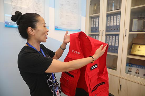 四进四出 1995年,不到25岁的王燕萍,是很多人眼里的“暴发户”。 从武汉丹水池到易家墩小巴上,她上半身挂在车外,手猛拍车身揽客的身影,是彼时武汉女人自强不息的一道风景。 承包两台小巴,跑的是热门线路,她本应跨步进入小康。但就在这一年,她被海洛因俘虏,人生轨迹急转直下。离婚,女儿不再相见。王燕萍舍弃了亲人,在外面与毒品为伴,终日在毒潭里挣扎。 王燕萍记得2006年第一次和王群见面,那一次她因吸食海洛因又被民警抓获。在派出所等待处罚时,一位女民警进来问:“谁是王燕萍?” 女民警说:“我是你的管段户籍王群,几次托人带信想和你见面,都没见到你,今天终于对上号了。” 王燕萍心想:“你找我,还有什么好事?还不是想把我送强戒。” 那一次因为身体有病,王燕萍没有被收治。王燕萍记得,送她出来时,在派出所大门口,王群对她说:“以后想戒毒,来社区警务室找我。” 王燕萍对这话并没放在心上,出来后又吸得昏天暗地。偶尔清醒的时候,她会想到王群的那句话,她想找王群试一试,看王群有什么能耐帮她戒毒。 找到王群的当天,王群就动员王燕萍参加了“美沙酮药物治疗”。带她到健康门诊,帮她办理了喝药手续,还帮我垫付了医药费。医生问我:“那个民警是你亲戚?” 通过一段时间的接触和了解,王燕萍对王群放下了戒备心理,遇到什么事情,都会跟她说,“每次她都会耐心地开导我”。王燕萍的那年生日,也是王群陪着度过的。经过王群的帮助,和王燕萍分别二十多年的女儿,也和她相认了。 然而,王燕萍这一次还是没能摆脱。清醒和幸福了一段时间后,见到几位毒友,王燕萍又忘记了女儿和王群,再一次坠入毒潭。 2014年,王燕萍第四次强戒回家,她第一个去见的还是王群。  王燕萍展示她那件不常穿的“红马甲”