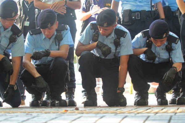 疑犯被捕后,太古城中心保安一度围起白色围板围起疑犯。此外,该嫌犯于26日下午被押走送上警车,带到柴湾警署调查,晚上被押返位于将军澳健明邨健晴楼的寓所搜证。报道称,她黑布蒙头、锁上手铐、腰缠铁链,大批机动部队看守各出入口,搜证行动至午夜才结束,警方在其寓所再获3支仿制枪、一些子弹及文件。 港岛总区重案组总督察许康杰说,初步相信她独自行动,无同党,犯案动机为家庭纠纷;疑犯并未受伤,被捕时无激烈反抗,亦无精神病纪录。目前,警方正调查她如何获得手枪。