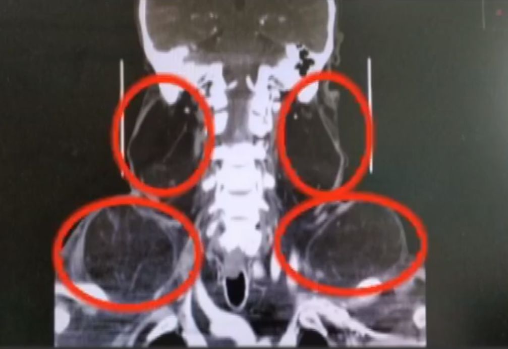 大概在七八年前,李老伯的脖子和肩膀开始肿大,因为不影响正常生活,李老伯并没有在意。可是最近一年来,瘤子越来越大,样子看上去很吓人,关键是不能正常呼吸了。
