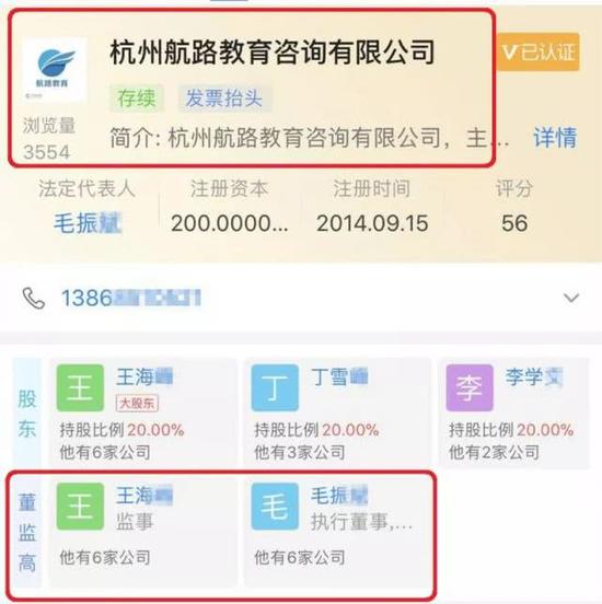 原本以为交了钱参加完培训能自食其力的也好,可培训过后公司推荐的工作却并不能让当事人满意。 首先学员们去面试的时候说自己是航路教育推荐过来的,对方的工作人员表示不知道。学员们十分不解:为什么是推荐就业的协议单位,对方公司会不知道呢? 其次推荐去面试的公司大多数看起来规模都不大,有的公司甚至只有一两个人;“他们给我推荐了一个公司,我去面试一看,公司黑漆漆的好像仓库一样,我都没敢进去。“一名参与培训的学员告诉记者。而有着同样遭遇的有十余人。 记者调查发现玄机 通过向几位当事人了解记者发现,大家虽然是被不同的公司通知面试,但是最后都被推荐到了航路教育咨询有限公司进行培训。更巧的是包括航路教育在内的这几家公司的地址都是在滨江区海越大厦10楼。 不仅如此,记者通过天眼查还发现当时通知丹丹来面试的杭州德世邦电子商务有限公司和杭州航路教育咨询有限公司的法人都是一个名叫毛某某的人。