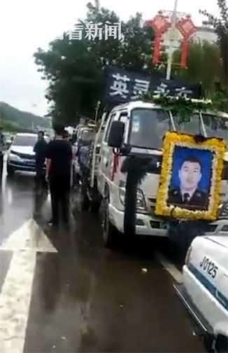 7月9日,延川县下起了小雨,当地上百名民警和群众自发走上街头为他送行。 英雄一路走好。