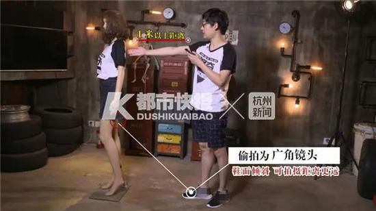 在大约距离模特两拳左右时,鞋舌上的摄像机就可以偷拍到模特裙底部位了。
