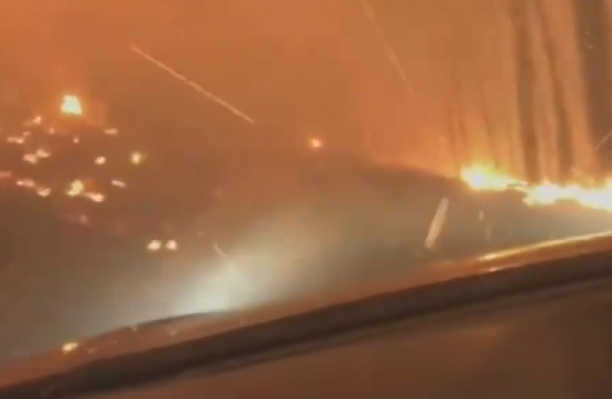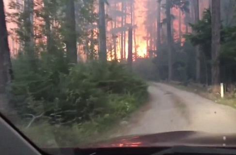 据《每日邮报》19日报道,贾斯汀·拜尔顿和他70岁的父亲查理在8月11日前往美国蒙大拿州的冰川国家公园露营。就在次日,一场雷雨导致树木被闪电击中,并就此引发一场大火。父子俩随即意识到情况不妙必须离开,而他们在开车逃离的路上却发现自己已经被凶猛的火焰团团围住。 视频显示,他们驶过的道路变得越来越危险,而随着能见度变差,大火产生的余烬也开始不断吹向挡风玻璃。贾斯汀不停地表示:“汽车正变得越来越热,它会爆炸的。耶稣,求求你。上帝,请救救我们。”而他的父亲则是一直以平稳淡定的声音回应儿子,试图让他冷静下来。  视频截图