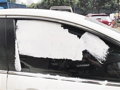 被孩子们用腻子粉涂刷的车辆。 警方供图